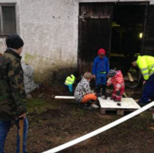 Det är skönt när det är vinter och det är lite lugnare på gården för då hinner Mathias vara mer med familjen. Just nu byggs det en koja med riktigt tak och och det är kul när hela familjen kan vara tillsammans. Alla hjälper till efter sin förmåga, fast är man 17 månader är man mest i vägen… Nils och Alva är ändå lyckliga över att få vara med. Det är dessa stunder som man får tänka tillbaka på när det är mycket att göra på gården.